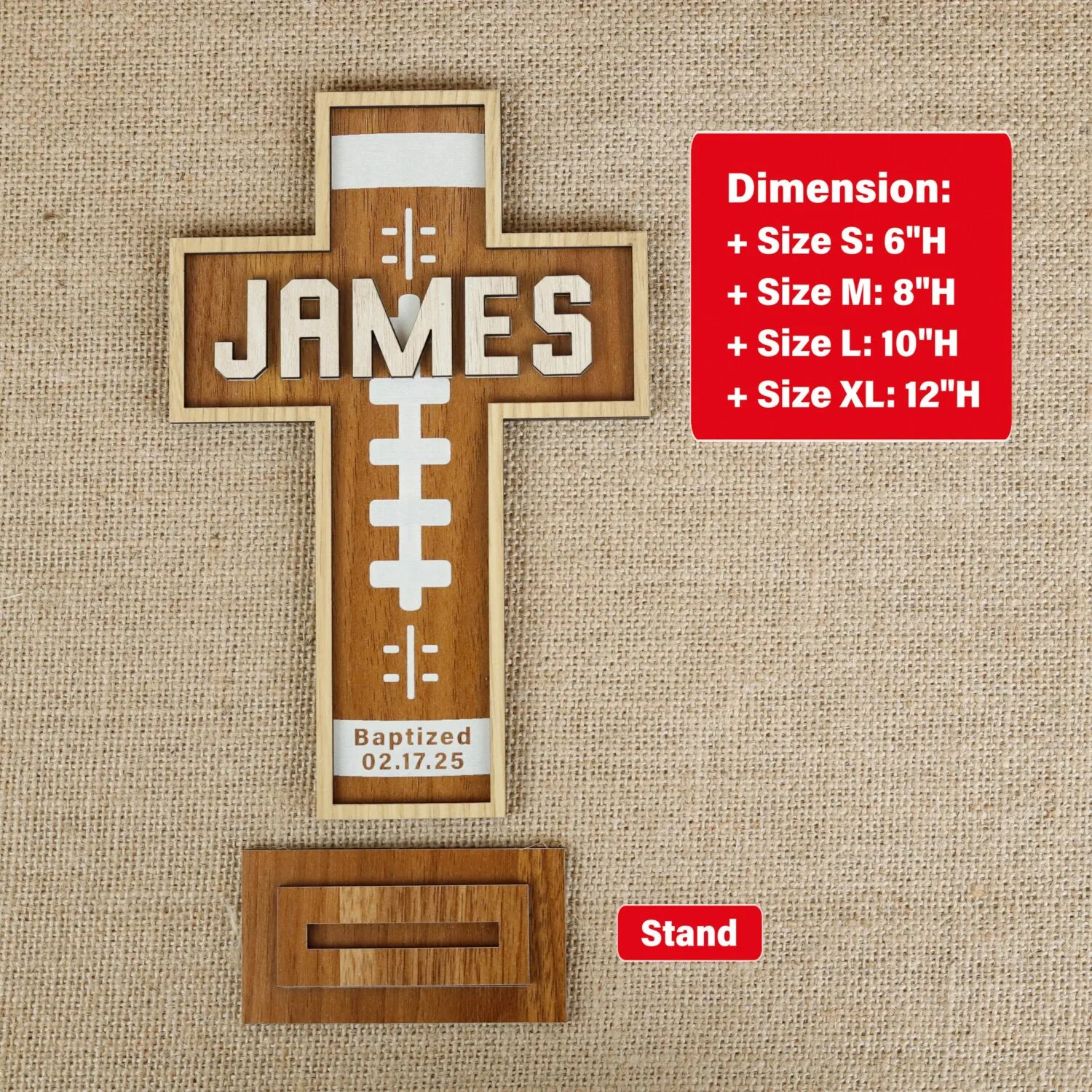 Honor a special baptism with our Football-Themed Baptism Cross. This personalized keepsake blends faith with sporty style, making it a sweet gift for baby boys. Moreover, the design brings warmth and joy wherever it’s placed. Personalized Football-Themed Baptism Cross—carved plywood and wood frame keepsake, available in 6–12 inches. Custom engravings include child’s name, event, and date. Comes ready to hang or display with stand option. |