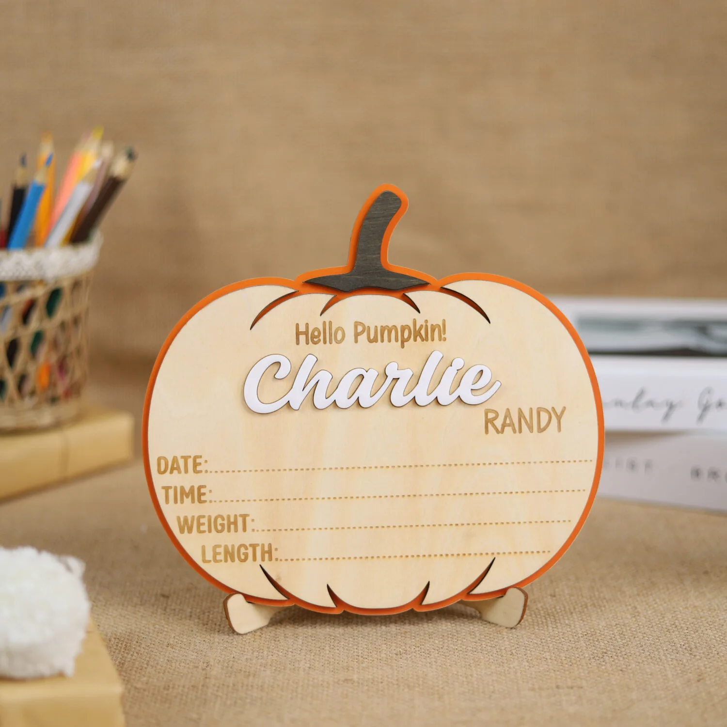 Hello Pumpkin Baby Birth Announcement – Personalized Newborn Sign | Fall-Themed Baby Birth Announcement Keepsake
