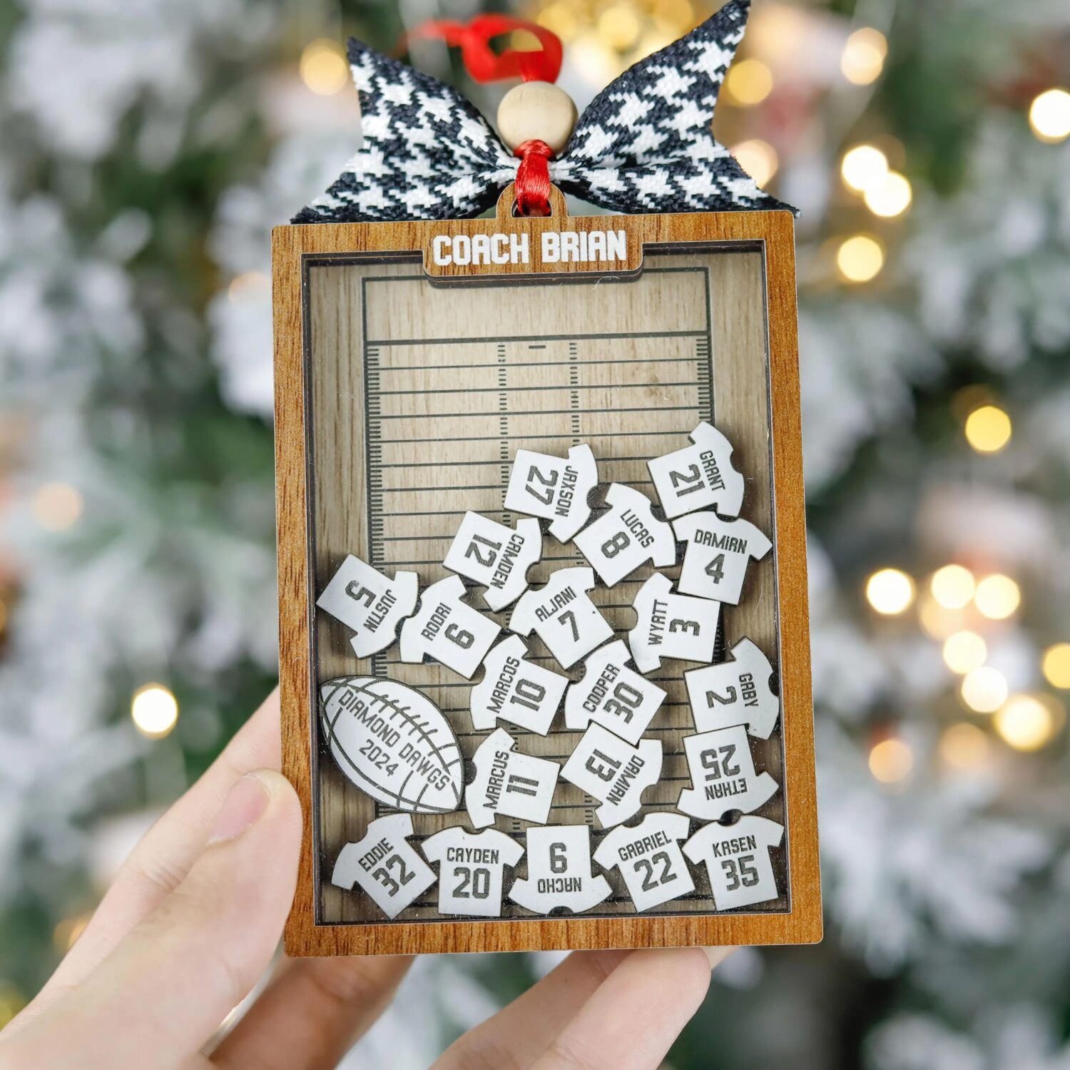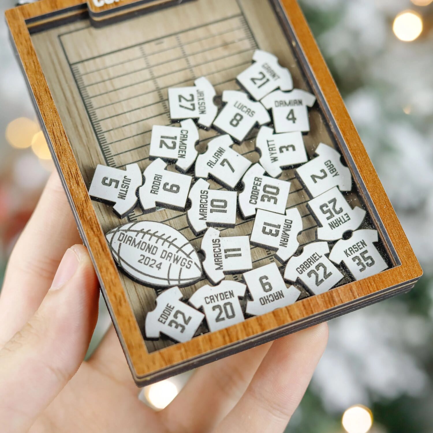 Honor the season, the players, and the coach with this Personalized 4D Football Shaker Ornament. This layered keepsake brings names and jerseys into motion—giving life to every detail. Hang it on your tree, display it on a shelf, or gift it to someone who lives for football.