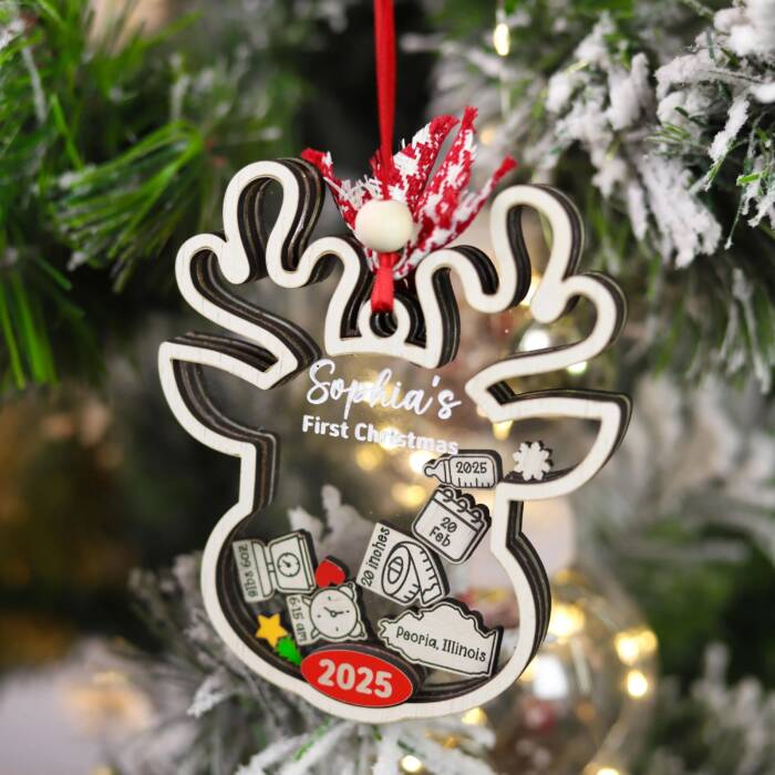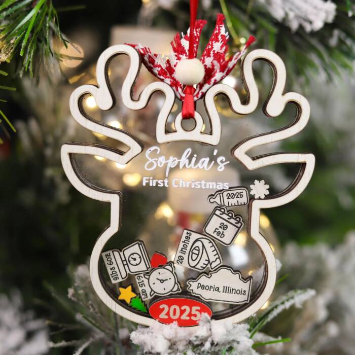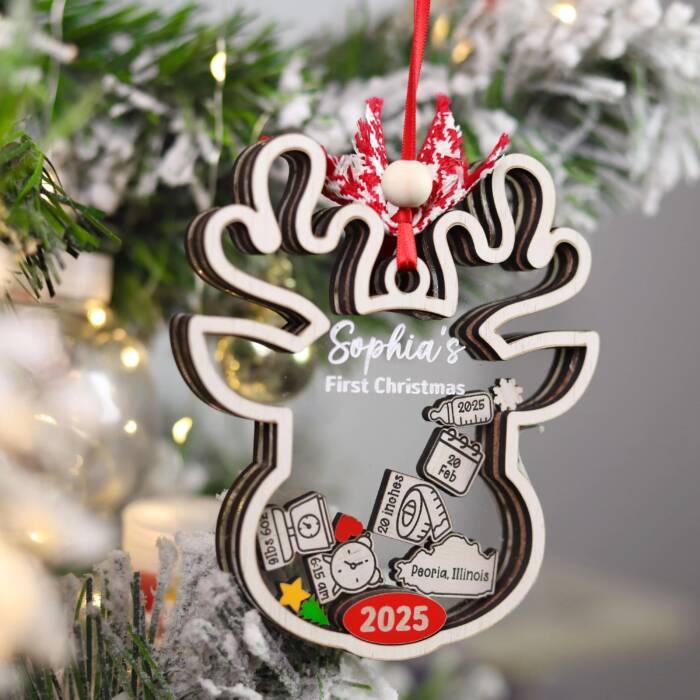 Personalized Baby’s First Christmas Ornament – Reindeer Design Keepsake | Personalized Ornament | Woodhug