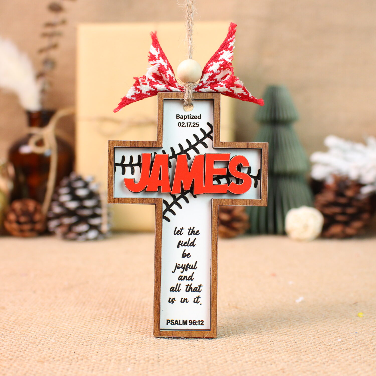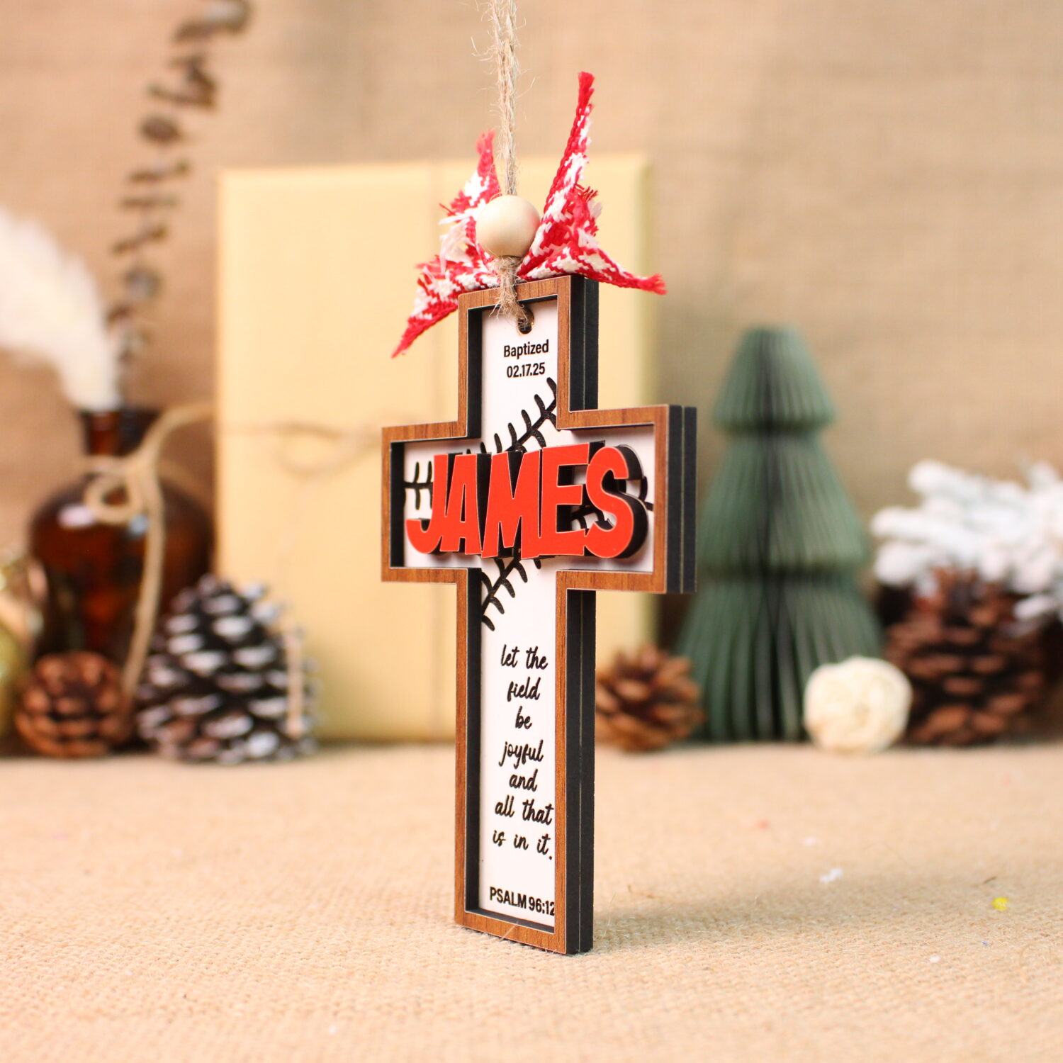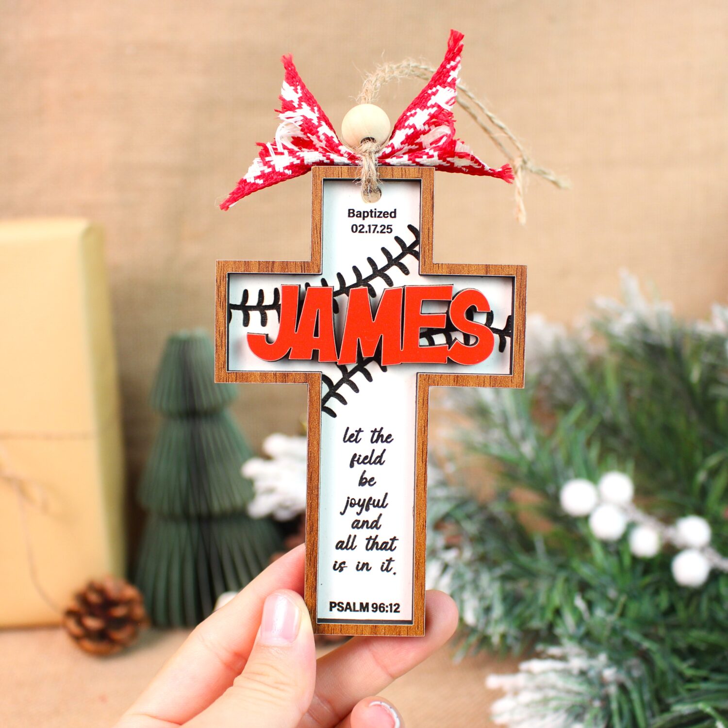 Personalized Baseball Cross Ornament – Custom Baptism & Christening Gift | Personalized Ornament