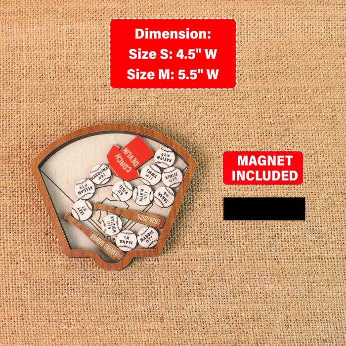 Made from high-quality MDF and acrylic layers, this 4-layer magnet features a durable build that holds up through seasons. It includes a magnet backing so you can proudly display it on lockers, refrigerators or team vans.