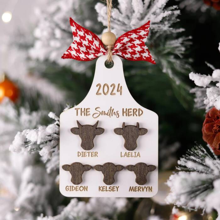 Don’t let another Christmas pass without a keepsake that honours your family’s togetherness and flair. Order your personalized cow tag family ornament today and give a gift your “herd” will hang with pride year after year.