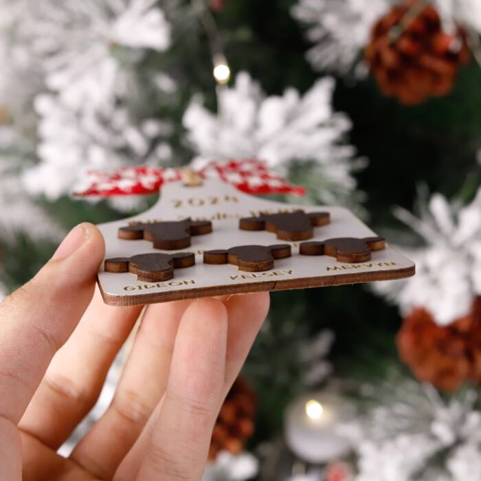 Bring a rustic, fun twist to your holiday décor with this cow tag family ornament that showcases your entire family by name. Whether you’re a big “herd” of six or a cozy trio, personalize it with every name and celebrate togetherness in style.