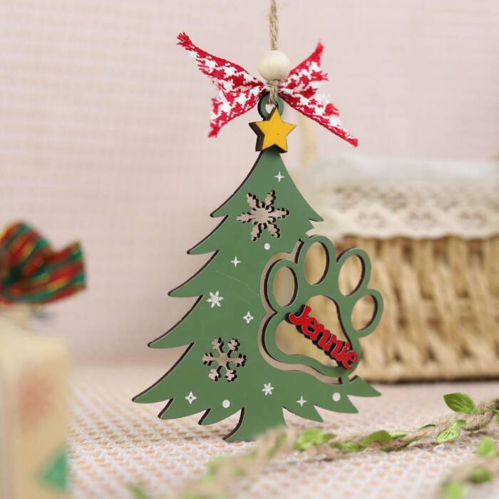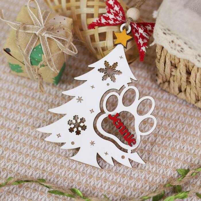 Personalized Dog Paw Christmas Ornament – Custom Name Keepsake for Pet Lovers | Personalized Ornament | Woodhug