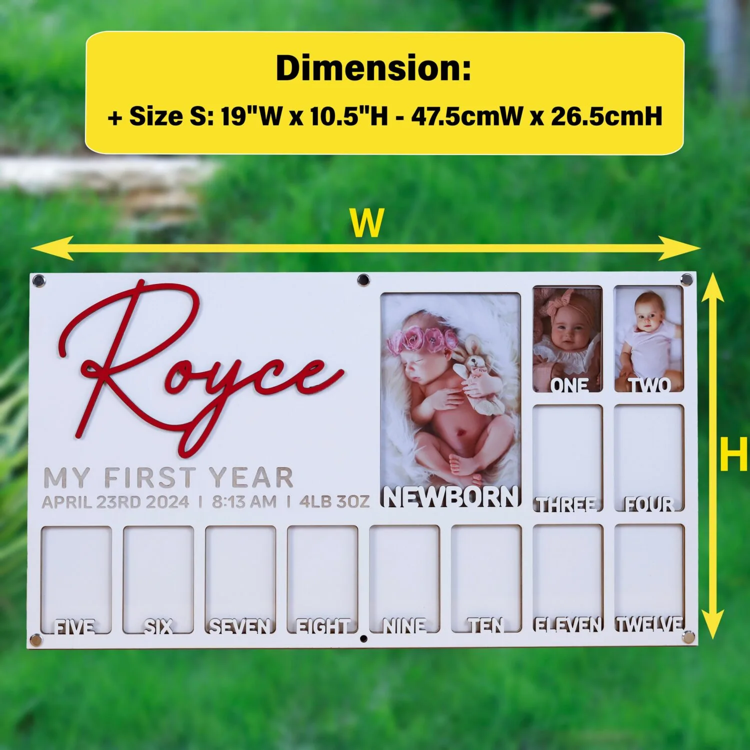Baby’s First Year Frame with Bow | Personalized Keepsake for Newborn | Custom Wooden Nursery Decor | Baby Shower & Birthday Gift