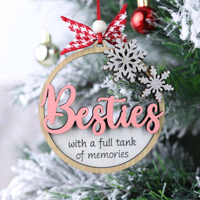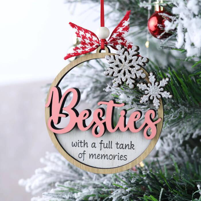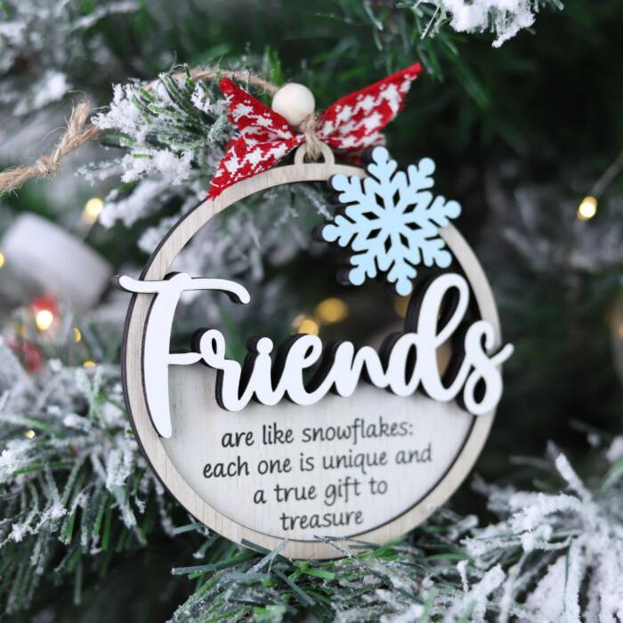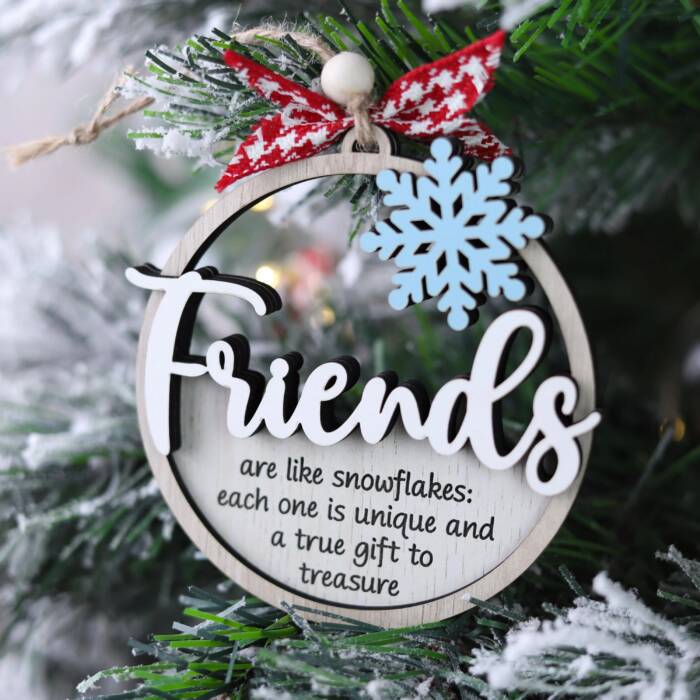 Don’t let another Christmas go without acknowledging your favourite people. Order your personalized friends Christmas wooden ornament today and give a token of friendship that hangs beautifully and means even more.