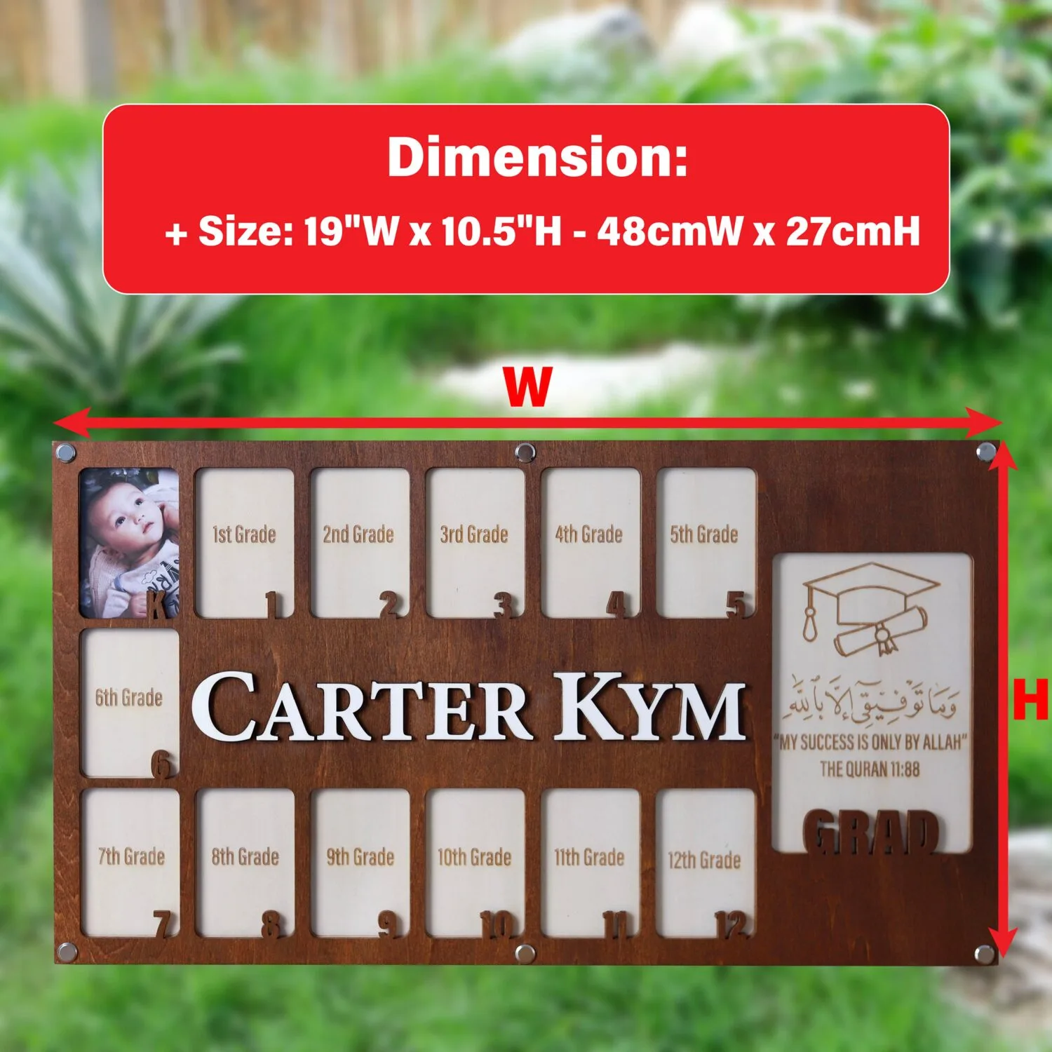 Product datasheet | The Personalized Muslim Graduation Photo Frame is a beautiful and meaningful way to honor a graduate’s journey. Not only does it celebrate academic success, but it also reflects faith and values. To begin with, this frame is designed with Islamic elegance and personal touches, making it both stylish and symbolic. Moreover, a custom Muslim graduation frame combines faith and accomplishment in a thoughtful display. Whether you choose wood or acrylic, each piece is crafted from high-quality materials and adorned with Islamic motifs or calligraphy. As a result, the design ensures both beauty and durability. |