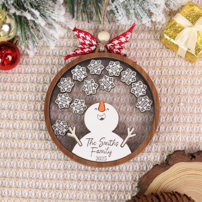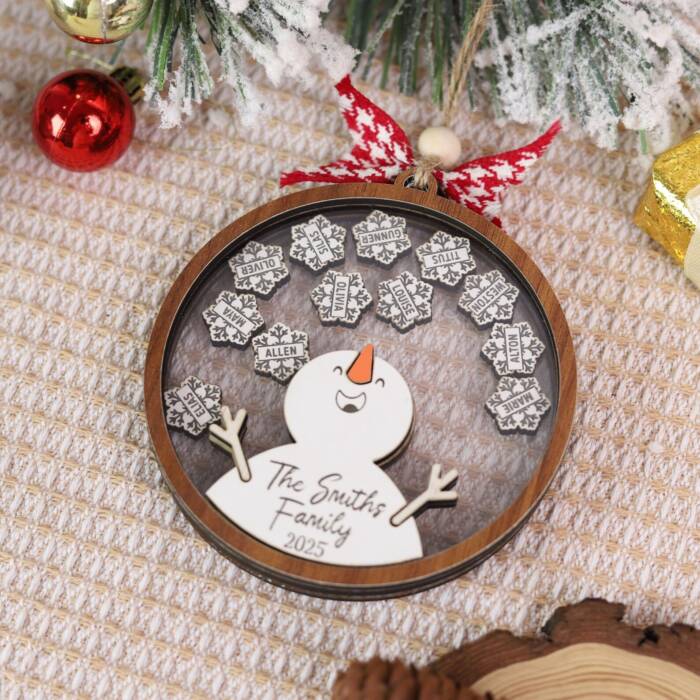 Made from premium materials—such as layered wood or acrylic—this ornament features crisp engraving (or printing) and a charming snowman family silhouette. In addition, it comes ready to hang with a ribbon included, so you can display it immediately and start the tradition.