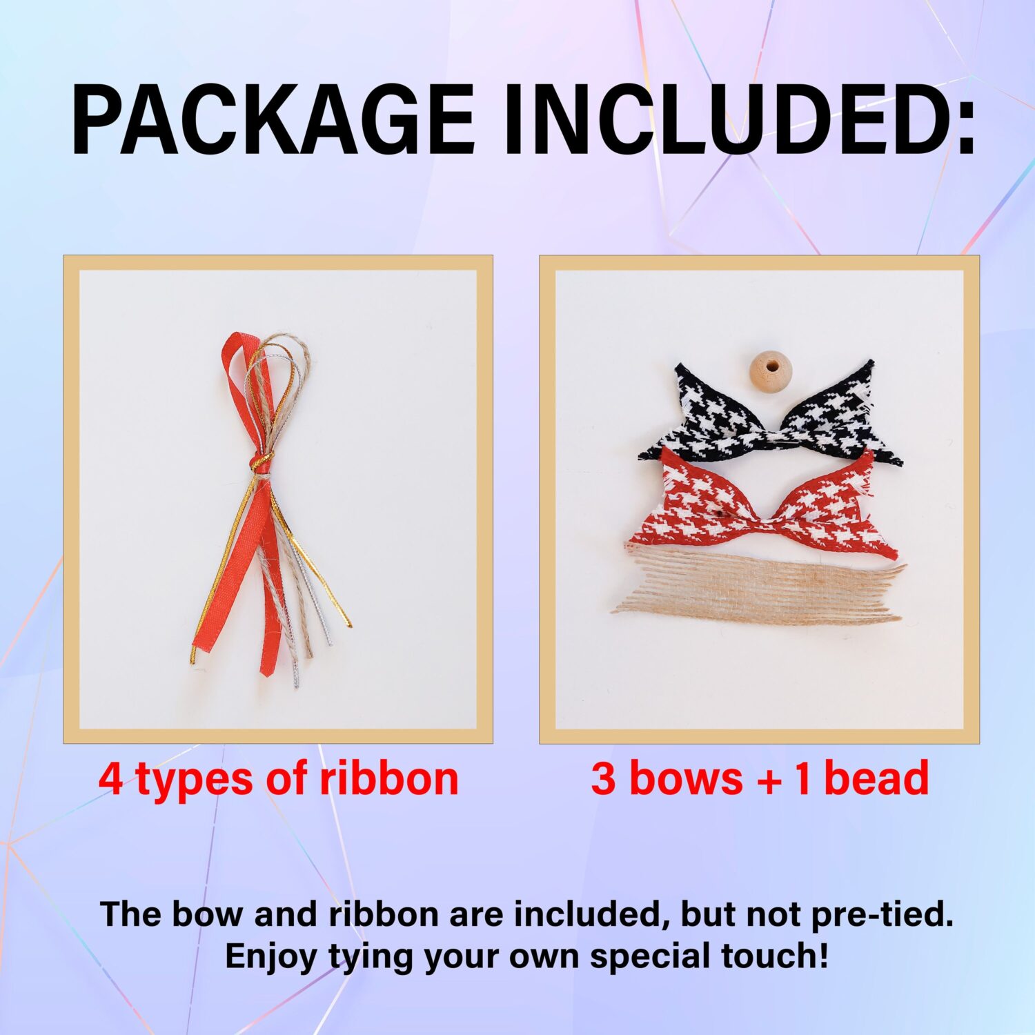 Each layer is precisely cut and bonded with premium glue to ensure durability and alignment. The text is engraved to resist wear. The ornament includes multiple ribbon and bow styles you tie yourself for a custom finish.