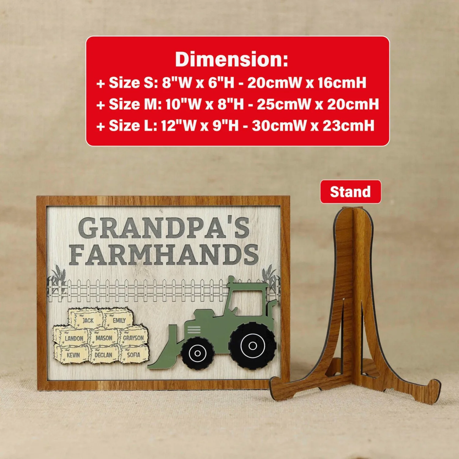 Celebrate grandpa’s love for tractors and grandchildren with this personalized tractor grandpa sign, a custom keepsake for grandparents who love farming. Indeed, it is perfect for celebrating family ties. Plus, it is engraved with names of up to five grandchildren. For example, it brings rustic charm to the garage or living room, spreading warmth and pride. Handcrafted from premium wood, this sign has a sturdy, rustic style. So it can last through years of display. Plus, it comes in a perfect size, with a hanging hook for easy installation. That’s why it’s been praised as “well-crafted” and “durable.” For example, its sturdy construction fits into a farmhouse or vibrant home setting. |